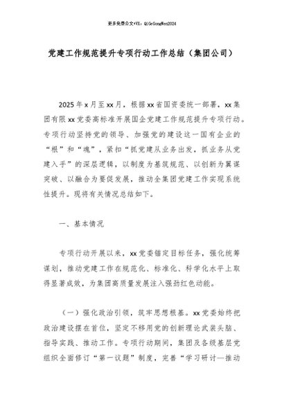 / 【七哥公文】2026年:党建工作规范提升专项行动工作总结(集团公司)+更多免费公文+VX:QiGeGongWen2024