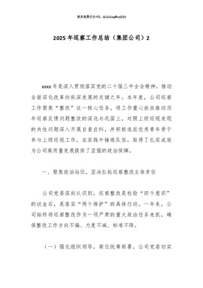 / 【七哥公文】2026年:2025年巡察工作总结(集团公司)2+更多免费公文+VX:QiGeGongWen2024