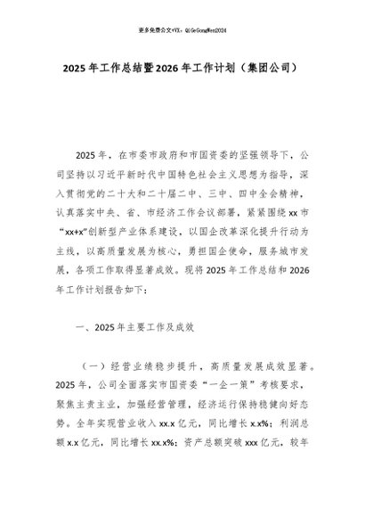 【七哥公文】2026年:2025年工作总结暨2026年工作计划(集团公司)+更多免费公文+VX:QiGeGongWen2024