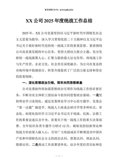 / 【七哥公文】2026年:XX公司2025年度统战工作总结+更多免费公文+VX:QiGeGongWen2024