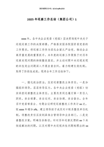 / 【七哥公文】2026年:2025年巡察工作总结(集团公司)1+更多免费公文+VX:QiGeGongWen2024