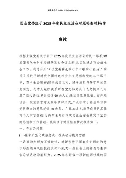 【七哥公文】2026年:国企党委班子2025年度民主生活会对照检查材料(带案例)_副本+更多免费公文+VX:QiGeGongWen2024