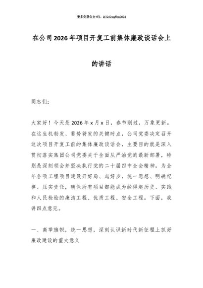 【七哥公文】2026年:在公司2026年项目开复工前集体廉政谈话会上的讲话_副本+更多免费公文+VX:QiGeGongWen2024