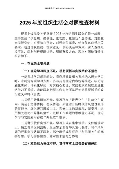 / 【七哥公文】2026年:2025年度组织生活会对照检查材料(1)+更多免费公文+VX:QiGeGongWen2024
