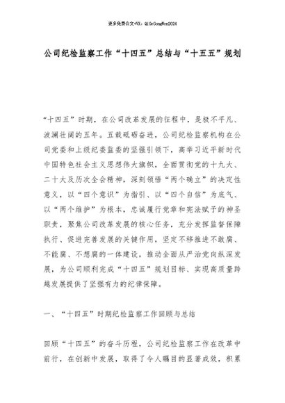 / 【七哥公文】2026年:公司纪检监察工作“十四五”总结与“十五五”规划+更多免费公文+VX:QiGeGongWen2024