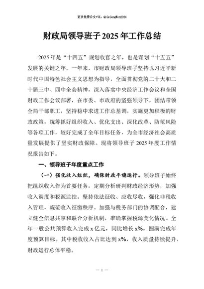 / 【七哥公文】2026年:财政局领导班子2025年工作总结+更多免费公文+VX:QiGeGongWen2024