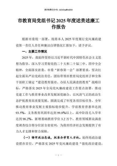 / 【七哥公文】2026年:市教育局党组书记2025年度述责述廉工作报告+更多免费公文+VX:QiGeGongWen2024