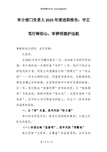 【七哥公文】2026年:审计部门负责人2025年度述职报告:守正笃行铸初心,审辨明微护远航(3)+更多免费公文+VX:QiGeGongWen2024