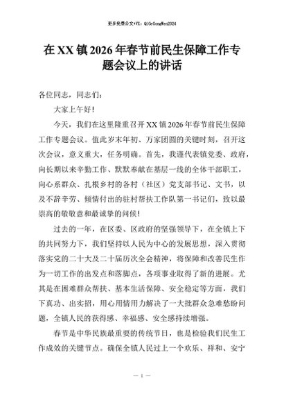 【七哥公文】2026年:在XX镇2026年春节前民生保障工作专题会议上的讲话+更多免费公文+VX:QiGeGongWen2024
