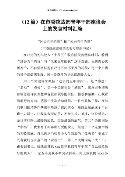 【七哥公文】2026年:(12篇)在市委统战部青年干部座谈会上的发言材料汇编+更多免费公文+VX:QiGeGongWen2024