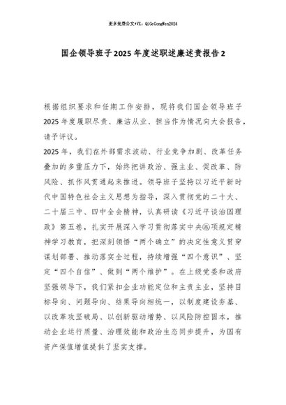 【七哥公文】2026年:国企领导班子2025年度述职述廉述责报告2_副本+更多免费公文+VX:QiGeGongWen2024