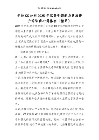 【七哥公文】2026年:参加XX公司2025年党务干部能力素质提升培训班心得体会(精品)_副本+更多免费公文+VX:QiGeGongWen2024