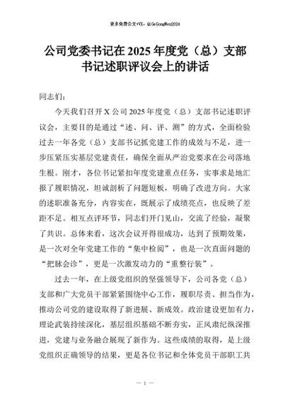 【七哥公文】2026年:公司党委书记在2025年度党(总)支部书记述职评议会上的讲话+更多免费公文+VX:QiGeGongWen2024