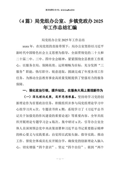 【七哥公文】2026年:(4篇)局党组办公室、乡镇党政办2025年工作总结汇编+更多免费公文+VX:QiGeGongWen2024