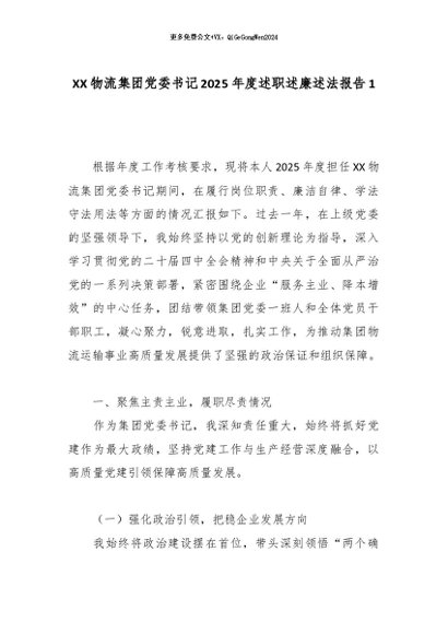 【七哥公文】2026年:XX物流集团党委书记2025年度述职述廉述法报告1_副本+更多免费公文+VX:QiGeGongWen2024