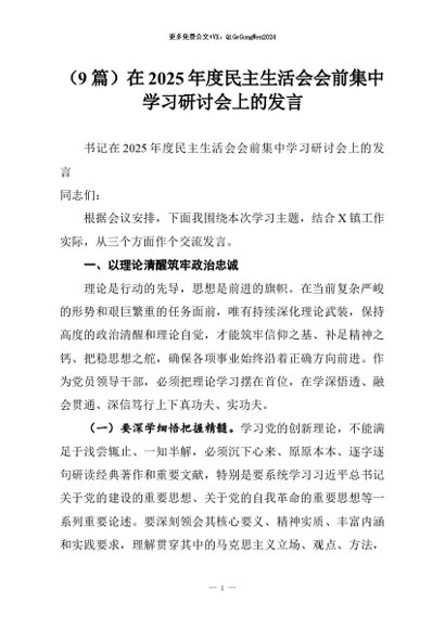 【七哥公文】2026年:(9篇)在2025年度民主生活会会前集中学习研讨会上的发言+更多免费公文+VX:QiGeGongWen2024