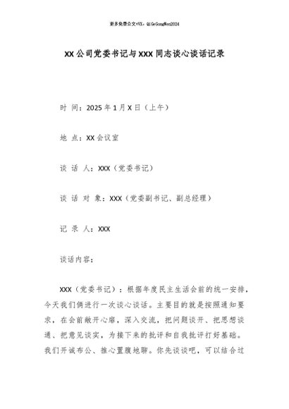 / 【七哥公文】2026年:XX公司党委书记与XXX同志谈心谈话记录_副本+更多免费公文+VX:QiGeGongWen2024