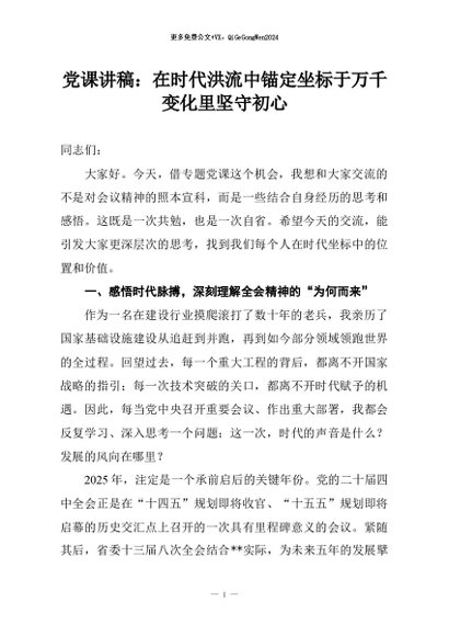 【七哥公文】2026年:党课讲稿:在时代洪流中锚定坐标于万千变化里坚守初心+更多免费公文+VX:QiGeGongWen2024