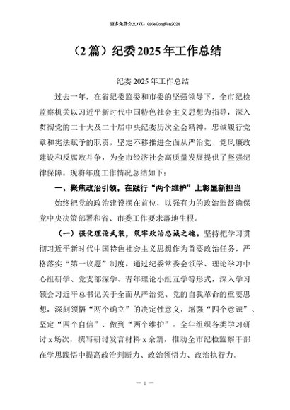 / 【七哥公文】2026年:(2篇)纪委2025年工作总结+更多免费公文+VX:QiGeGongWen2024