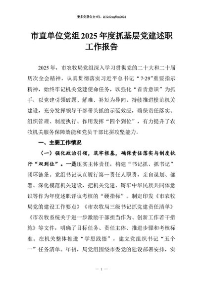 / 【七哥公文】2026年:市直单位党组2025年度抓基层党建述职工作报告+更多免费公文+VX:QiGeGongWen2024