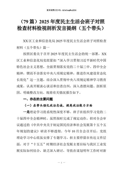 【七哥公文】2026年:(79篇)2025年度民主生活会班子对照检查材料检视剖析发言提纲(五个带头)+更多免费公文+VX:QiGeGongWen2024