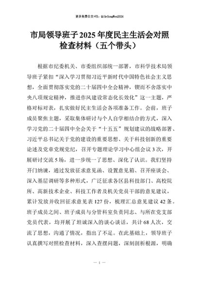 【七哥公文】2026年:市局领导班子2025年度民主生活会对照检查材料(五个带头)+更多免费公文+VX:QiGeGongWen2024