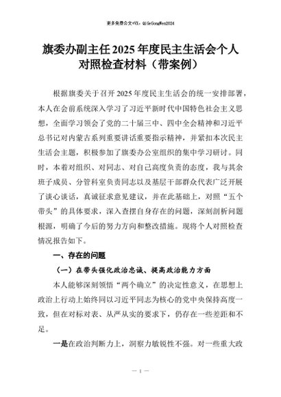 【七哥公文】2026年:旗委办副主任2025年度民主生活会个人对照检查材料(带案例)+更多免费公文+VX:QiGeGongWen2024