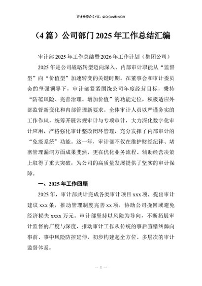 / 【七哥公文】2026年:(4篇)公司部门2025年工作总结汇编+更多免费公文+VX:QiGeGongWen2024