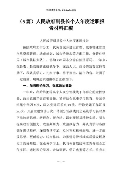/ 【七哥公文】2026年:(5篇)人民政府副县长个人年度述职报告材料汇编+更多免费公文+VX:QiGeGongWen2024