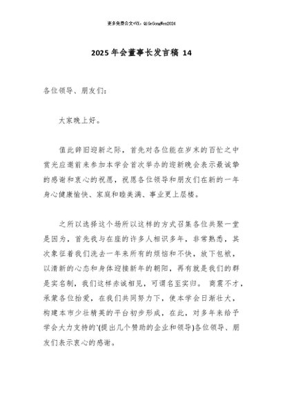 / 【七哥公文】2026年:2025年会董事长发言稿 14_副本+更多免费公文+VX:QiGeGongWen2024