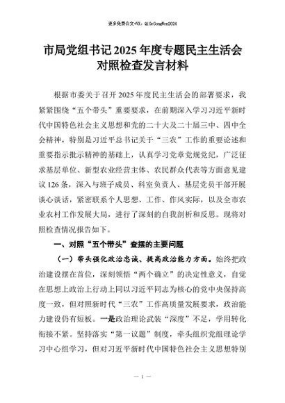 【七哥公文】2026年:市局党组书记2025年度专题民主生活会对照检查发言材料+更多免费公文+VX:QiGeGongWen2024