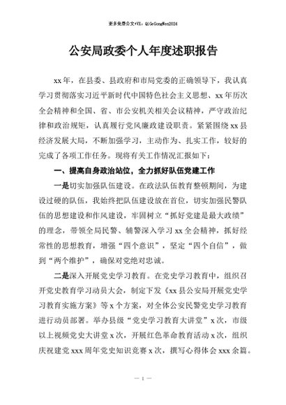 / 【七哥公文】2026年:公安局政委个人年度述职报告+更多免费公文+VX:QiGeGongWen2024