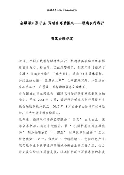 【七哥公文】2026年:金融活水润千企 深耕普惠助振兴——福建农行践行普惠金融纪实_副本+更多免费公文+VX:QiGeGongWen2024