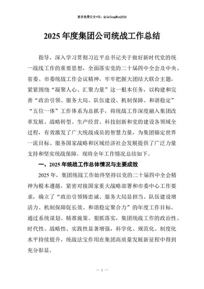 / 【七哥公文】2026年:2025年度集团公司统战工作总结+更多免费公文+VX:QiGeGongWen2024