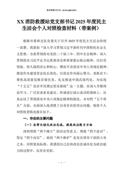 【七哥公文】2026年:XX消防救援站党支部书记2025年度民主生活会个人对照检查材料(带案例)+更多免费公文+VX:QiGeGongWen2024