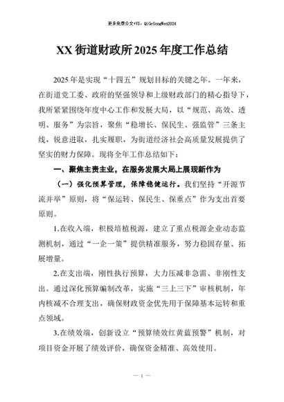 / 【七哥公文】2026年:XX街道财政所2025年度工作总结+更多免费公文+VX:QiGeGongWen2024