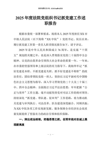 / 【七哥公文】2026年:2025年度法院党组织书记抓党建工作述职报告+更多免费公文+VX:QiGeGongWen2024