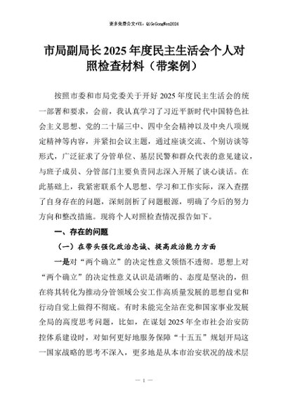 【七哥公文】2026年:市局副局长2025年度民主生活会个人对照检查材料(带案例)+更多免费公文+VX:QiGeGongWen2024