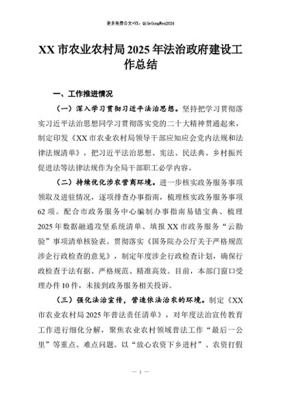 / 【七哥公文】2026年:XX市农业农村局2025年法治政府建设工作总结+更多免费公文+VX:QiGeGongWen2024