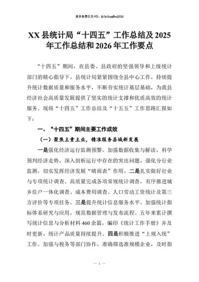 【七哥公文】2026年:XX县统计局“十四五”工作总结及2025年工作总结和2026年工作要点+更多免费公文+VX:QiGeGongWen2024