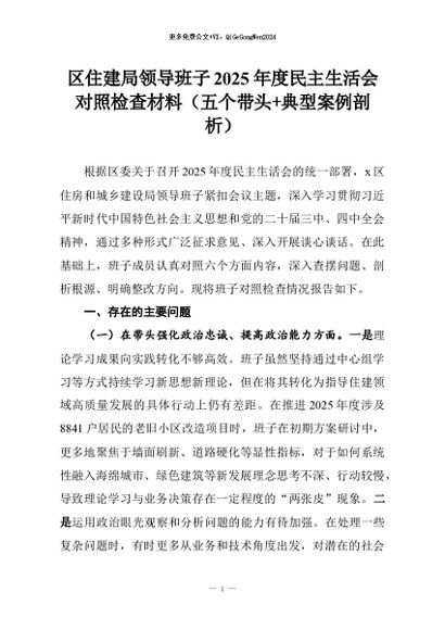【七哥公文】2026年:区住建局领导班子2025年度民主生活会对照检查材料(五个带头+典型案例剖析)+更多免费公文+VX:QiGeGongWen2024