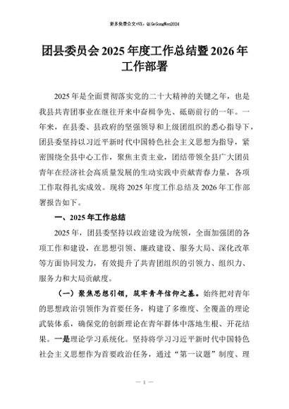 【七哥公文】2026年:团县委员会2025年度工作总结暨2026年工作部署+更多免费公文+VX:QiGeGongWen2024