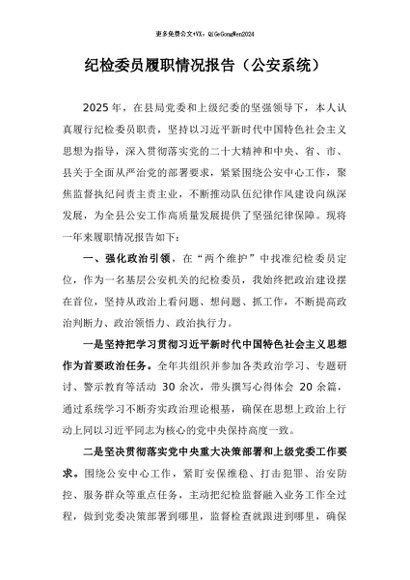 / 【七哥公文】2026年:纪检委员履职情况报告(公安系统)+更多免费公文+VX:QiGeGongWen2024