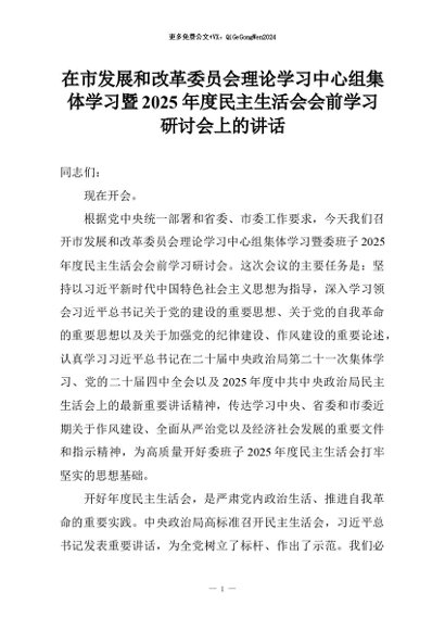 【七哥公文】2026年:在市发展和改革委员会理论学习中心组集体学习暨2025年度民主生活会会前学习研讨会上的讲话+更多免费公文+VX:QiGeGongWen2024
