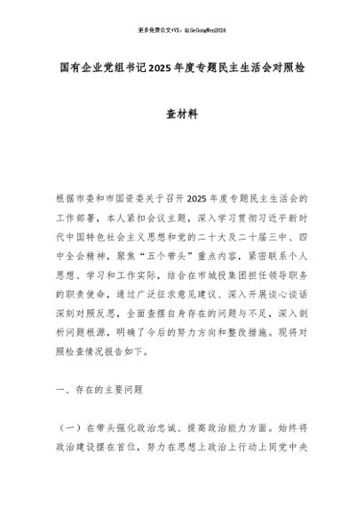 【七哥公文】2026年:国有企业党组书记2025年度专题民主生活会对照检查材料_副本+更多免费公文+VX:QiGeGongWen2024