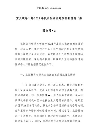 【七哥公文】2026年:党员领导干部2024年民主生活会对照检查材料(集团公司)3_副本+更多免费公文+VX:QiGeGongWen2024