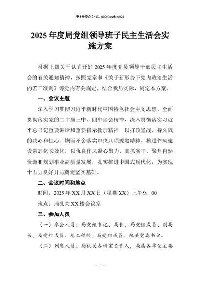 / 【七哥公文】2026年:2025年度局党组领导班子民主生活会实施方案+更多免费公文+VX:QiGeGongWen2024
