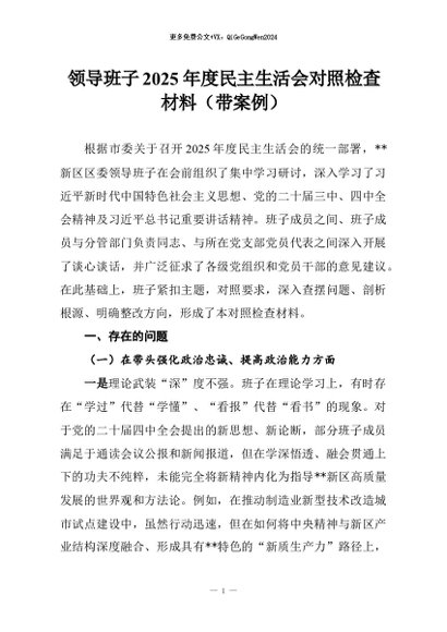 【七哥公文】2026年:领导班子2025年度民主生活会对照检查材料(带案例)+更多免费公文+VX:QiGeGongWen2024