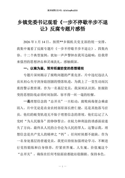 【七哥公文】2026年:乡镇党委书记观看《一步不停歇半步不退让》反腐专题片感悟+更多免费公文+VX:QiGeGongWen2024