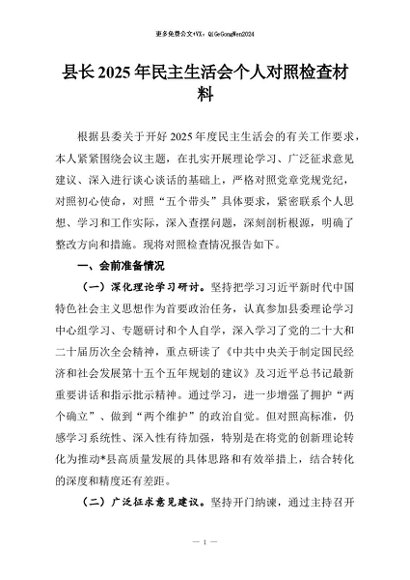 / 【七哥公文】2026年:县长2025年民主生活会个人对照检查材料+更多免费公文+VX:QiGeGongWen2024